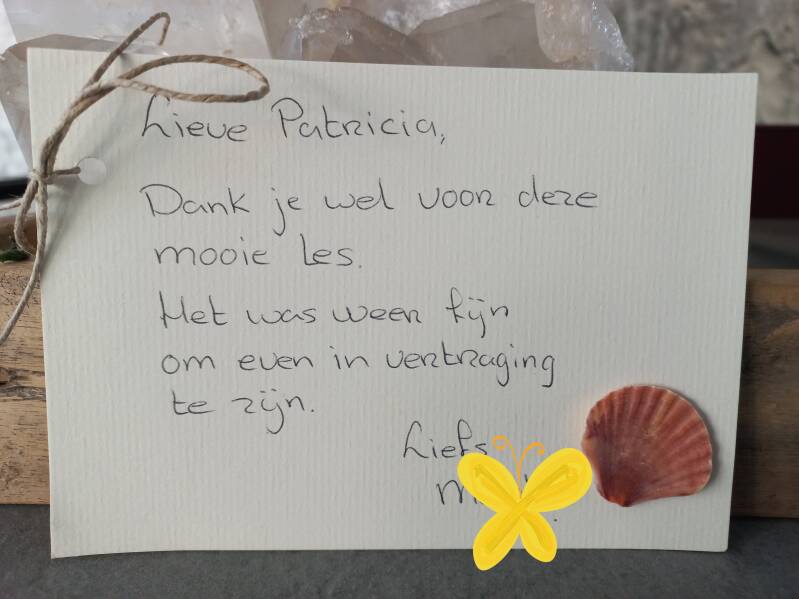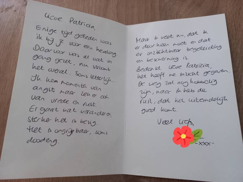 Het cadeautje wat ineens in de brievenbus zat. En het contact wat we nog even hadden. Zo mooi. Zo open. Ik was ontroerd.